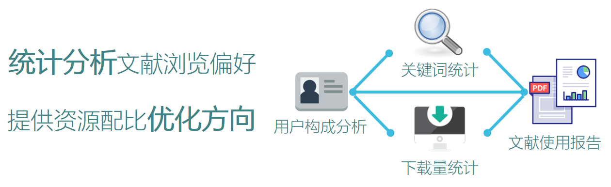 網瑞達Web 發(fā)布與管理系統(tǒng)與LDAP/RADIUS 對接,內外網用戶統(tǒng)一通過代理服務器訪問,統(tǒng)一認證身份,代理服務器精確統(tǒng)計用戶身份、相關搜索關鍵詞和文獻下載,對圖書館資源使用情況全面統(tǒng)計與分析,可生成相關分析報告,為決策者提供資源配比優(yōu)化方向。