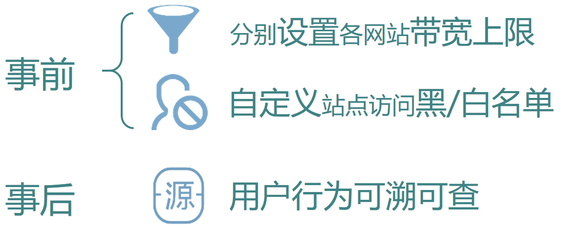 對單個網站設置帶寬上限,并開啟動態(tài)黑名單和惡意下載檢測,當檢測到用戶有異常訪問/ 下載行為時自動禁止訪問,實現(xiàn)有效預防。
